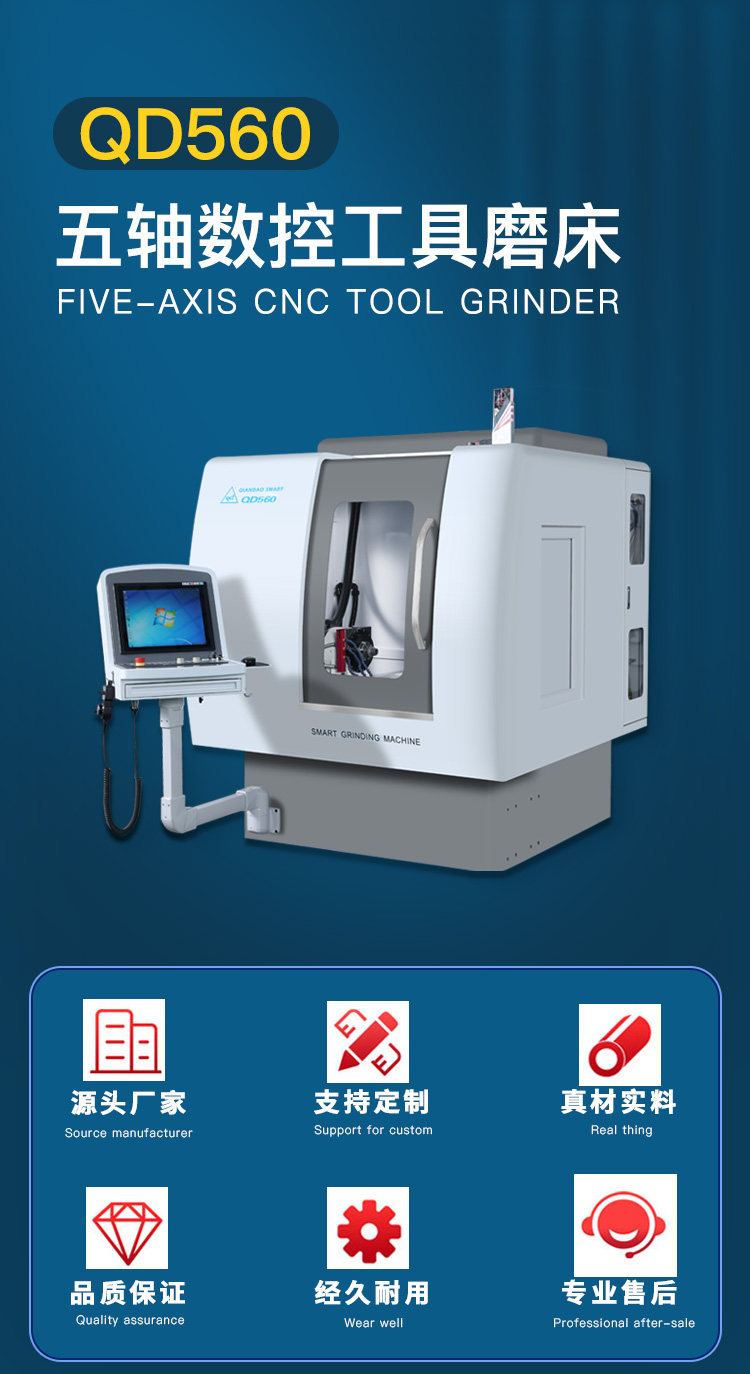 QD560是千島公司新研發(fā)的五軸五聯(lián)動數(shù)控工具磨床,是一款高性價比刀具磨床,適用于生產(chǎn)或修磨各類銑削類刀具、鉆削類刀具、成形刀具等 。
